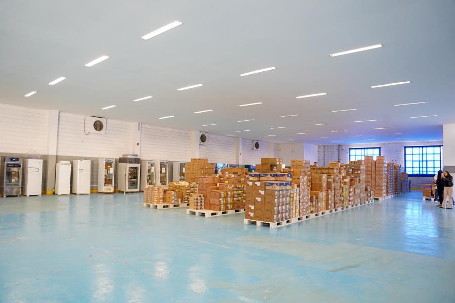 Em prédios separados, o almoxarifado municipal reúne um prédio de imunobiológicos, um prédio de medicamentos, insumos de enfermagem e insulinas e um prédio com as fraldas e produtos odontológicos.
