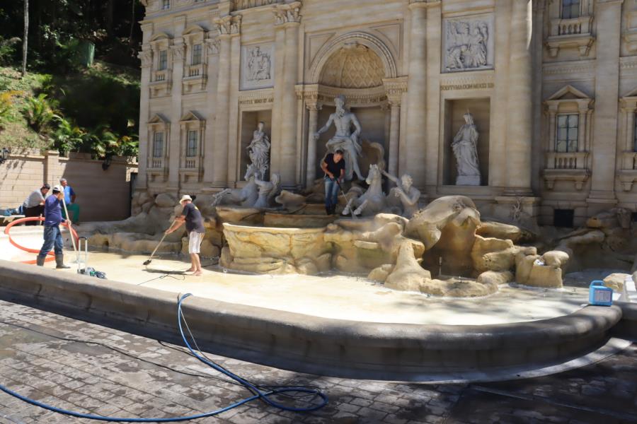 Equipes da Secretaria de Serviços Municipais e Secretaria de Obras e Infraestrutura da Prefeitura de Serra Negra passaram a manhã de 11 de setembro executando a limpeza e manutenção do espelho d’água da Fontana Di Trevi.