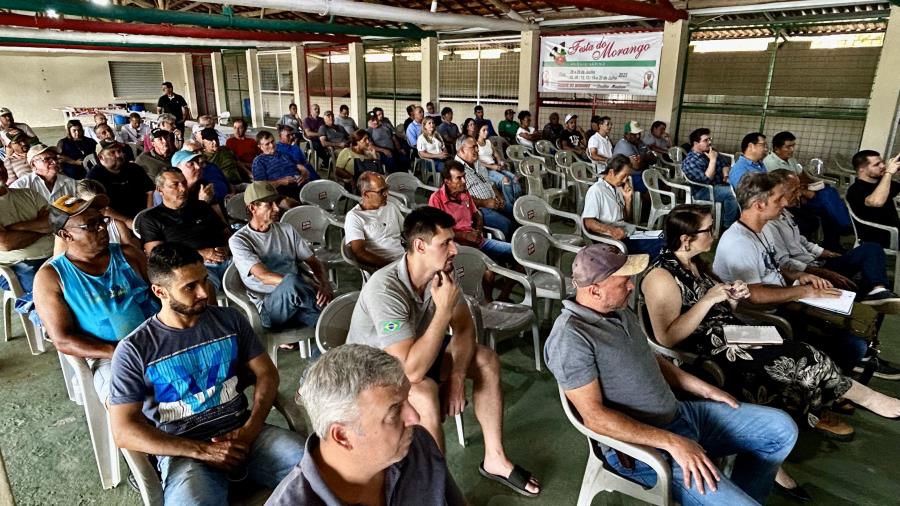 Produtores rurais da região estiveram no Parque do Morango “Duílio Maziero”, no Campo dos Aleixos, na segunda-feira (27), para conhecer o Fundo de Expansão do Agronegócio Paulista (FEAP), linha de crédito de apoio aos agricultores paulistas oferecida pela Secretaria de Estado da Agricultura e Abastecimento. No encontro, o secretário executivo da Secretaria de Estado e responsável pela área técnica do FEAP, Daniel Aigner de Miranda, fez explanação sobre programas de apoio e os benefícios das linhas de crédito disponibilizados pelo governo estadual.