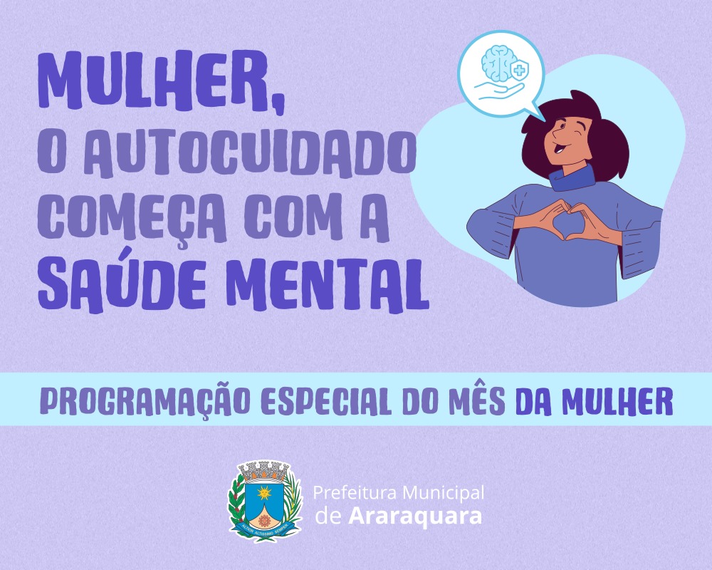 Março é o mês da mulher e a Prefeitura de Araraquara, por meio da secretaria de Direitos Humanos e Cidadania e da subsecretaria de Políticas Públicas para Mulheres, preparou uma programação especial de eventos. Este ano as atividades seguem o tema “Valorização da Saúde Mental da Mulher” e contam com o apoio da ASPA (Associação dos Servidores Públicos de Araraquara).