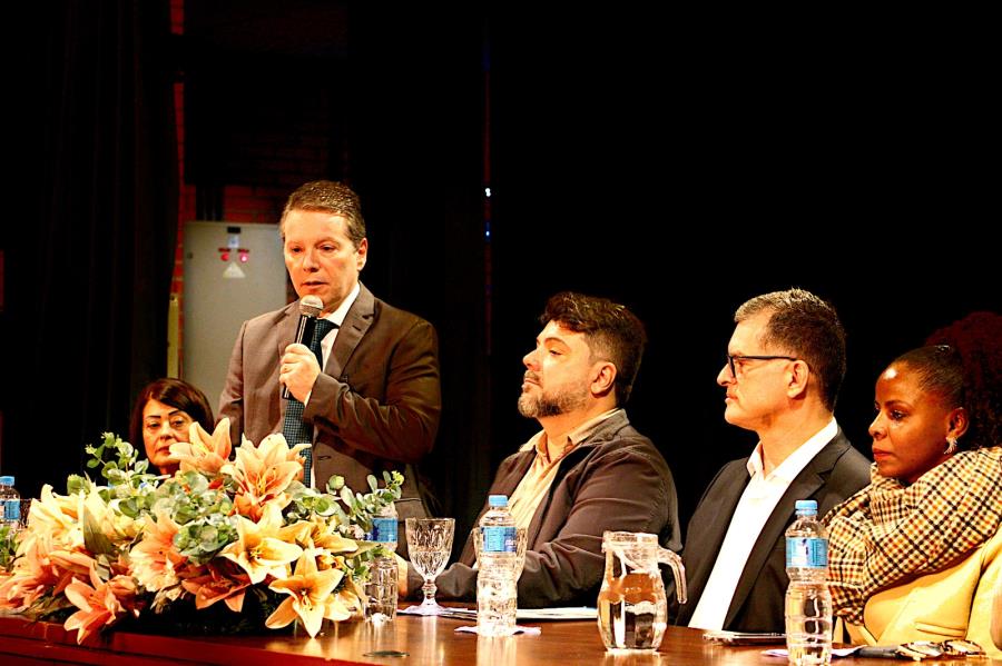 Entre as autoridades presentes estavam o vereador Marcelinho, representando a Câmara Municipal; Nayara Lara, da DRADS Araraquara; Ana Flávia da Cruz Souza Miranda, gerente adjunta do Sesc; Emanuelle Laurenti, da Fungota; Roseli Aparecida Cabau Seves, representante das OSCs e da sociedade civil; Jessyca Alencar e João Clemente, da Secretaria de Direitos Humanos; Renata Crespi, presidente da Fundart; além do palestrante convidado, Paulo Albano Filho.