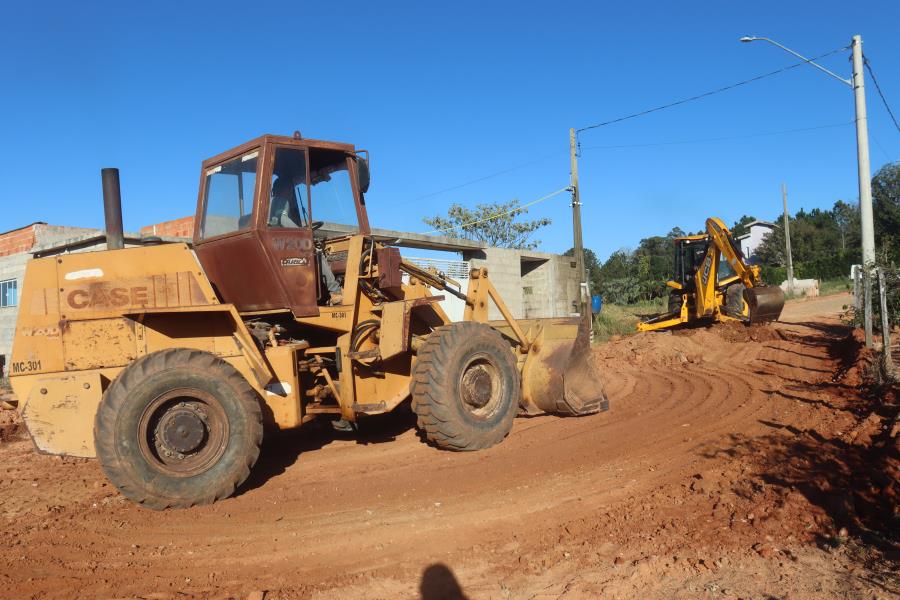 As vias também passam por obras de compactação de solo. Depois, guias e sarjetas serão colocadas para que uma empresa contratada em processo licitatório providencie a pavimentação asfáltica e posterior sinalização de solo.