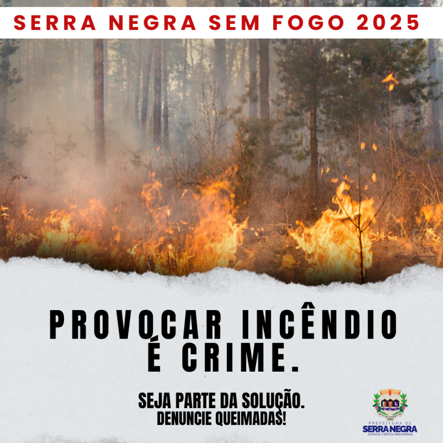 A Prefeitura de Serra Negra está em ação para proteger nossa cidade contra os perigos das queimadas! Com a campanha “Serra Negra Sem Fogo 2025”, reforçamos a importância da conscientização e da colaboração de todos para evitar incêndios que colocam em risco vidas, o meio ambiente e a saúde pública.
