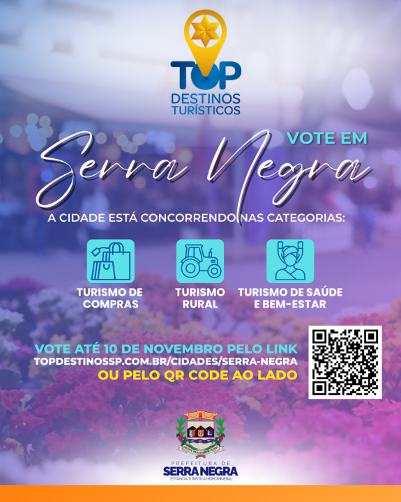 A votação popular segue aberta até 10 de novembro, no site https://topdestinossp.com.br/cidades/serra-negra/
